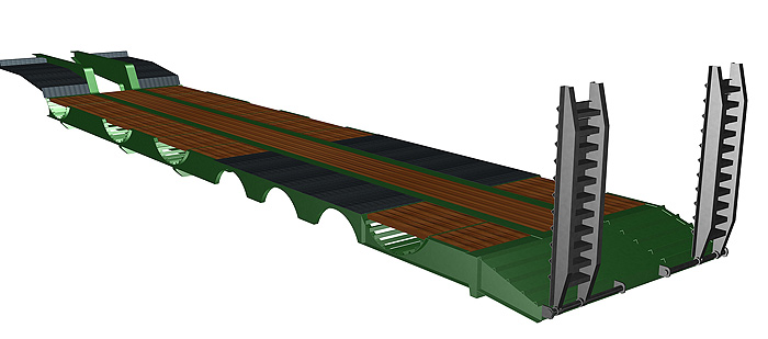 Projetada para o transporte de cargas como máquinas, tratores, colheitadeiras ou equipamentos.